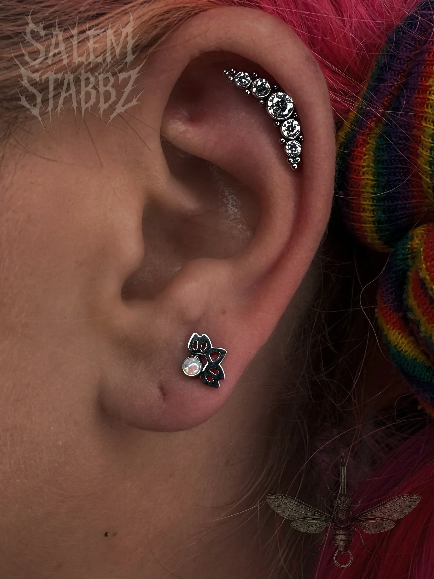 I am so so so proud of this one! They didn’t quite have the anatomy for a “traditional” industrial, so we made it work based on their anatomy 😉